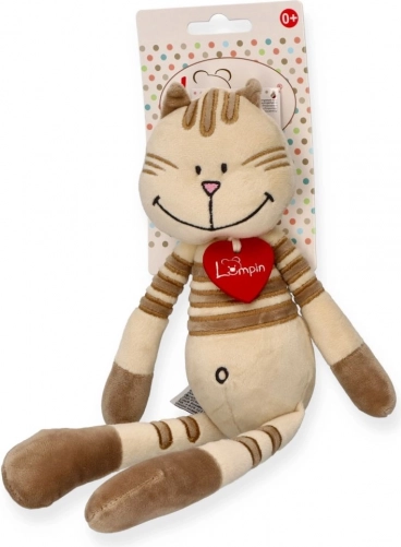 Questa morbida gattina di peluche nel piacevole colore beige con strisce marroni conquisterà i bambini con la sua espressione amichevole e le lunghe estremità, perfette da abbracciare. Grazie alla struttura leggera si tiene facilmente anche dalle mani più piccole e diventerà una compagna preferita per la nanna e il gioco.