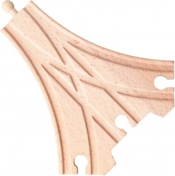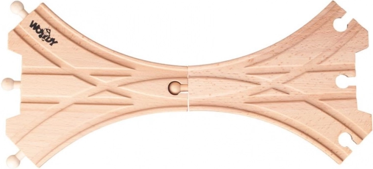 Lo scambio ferroviario a X è un elemento ideale per tutti i piccoli costruttori di piste. Permette l’incrocio dei tracciati e aggiunge più possibilità di instradare i treni e pianificare le corse. Grazie al semplice sistema di giunzione, si collega facilmente alle altre parti dei binari in legno.