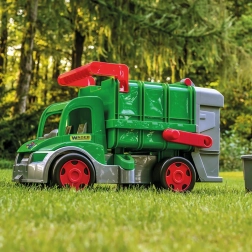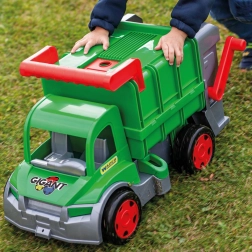Il camion della spazzatura WADER GIGANT FARMER offre ai bambini un gioco realistico di pulizia della città. Grazie al sollevatore mobile è facile svuotare il contenitore in dotazione, lo sportello posteriore apribile facilita carico e scarico e le ruote a scorrimento libero garantiscono un movimento fluido. La portata fino a 50 kg consente ai bambini di sedersi sul camion e tenersi alla pratica maniglia superiore, mentre il gancio anteriore permette il traino o il collegamento a un altro veicolo o a una corda.
