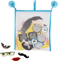 35 adesivi in schiuma (elementi del viso e accessori), rete portaoggetti con ventose
