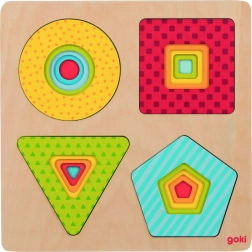 Questo puzzle a strati 4in1 del marchio GOKI offre livelli progettati in modo intelligente con forme colorate che motivano i bambini a esplorare e imparare. I cinque pezzi sono studiati affinché a ogni livello si inserisca solo la forma giusta: i bambini allenano naturalmente la coordinazione occhio–mano, la pazienza e la percezione spaziale.