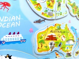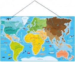 Questa mappa magnetica del mondo è un ottimo strumento per i bambini per conoscere paesi e continenti in modo giocoso. Lo strato inferiore è una mappa politica semplificata dove i bambini attaccano i pezzi del puzzle. Imparano la posizione geografica e le caratteristiche dei diversi paesi, compresa la fauna di queste aree.