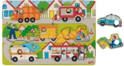 Questo colorato puzzle per bambini con veicoli è progettato per far scoprire ai piccoli nuove conoscenze. Ogni pezzo ha una cavità rotonda per un facile prelievo e nasconde un'altra immagine che appare una volta rimosso. I bambini saranno entusiasti di scoprire e divertirsi a parlare di ciò che accade per strada.