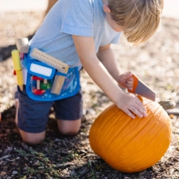 La pratica cintura in tessuto con tasche mantiene tutti gli attrezzi al sicuro e si adatta alla vita dei bambini.