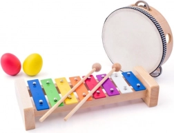 Questo set musicale è una scelta eccellente per i primi passi nella musica. Il xilofono con barre metalliche colorato, il tamburello risonante e il triangolo dal suono brillante motivano i bambini a esplorare suoni, ritmi e la propria creatività. Il set favorisce lo sviluppo della coordinazione, della concentrazione e della percezione uditiva.