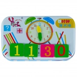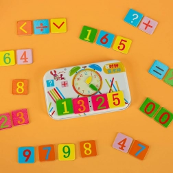 Pratico set educativo che aiuta i bambini, in modo divertente, con l’apprendimento di ore e minuti e con le prime operazioni matematiche. Grazie ai colori vivaci, alle tessere magnetiche e alla custodia in metallo compatta, è ideale per asilo, scuola e viaggi.