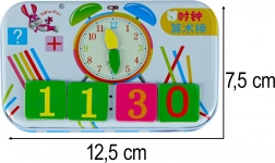 Il set è perfetto per una comprensione visiva del tempo e per le operazioni di base: con l’aiuto delle tessere con numeri e simboli i bambini esercitano addizioni e sottrazioni. Grazie alle dimensioni compatte, il set si porta facilmente ovunque: asilo, scuola e gite.