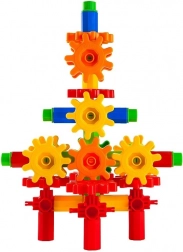 Il set include ruote dentate speciali che permettono la rotazione e il movimento delle costruzioni, sviluppando abilità meccaniche.