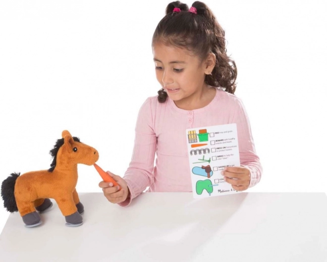 Il giocattolo favorisce lo sviluppo di empatia, gioco di ruolo e fantasia. I bambini possono spazzolare, nutrire e mettere a riposare il cavallino nella piccola scuderia, seguendo semplici schede con compiti. Il set è adatto a bambini dai 3 anni e rispetta gli standard CE.