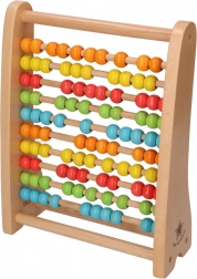 È costruito su un telaio robusto in legno che assicura durata e stabilità, ideale per frequenti utilizzi sia a casa che all'asilo. Le perline colorate facilitano la comprensione dei rapporti numerici e delle operazioni matematiche di base.