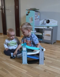 Questo giocattolo è adatto ai bambini dai 18 mesi ed è progettato per soddisfare tutti gli standard di sicurezza. Grazie alla cura dei dettagli, come finestre dipinte e un design che ricorda i veri edifici cittadini, il giocattolo attira l’attenzione e invoglia a giocare più e più volte.