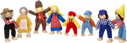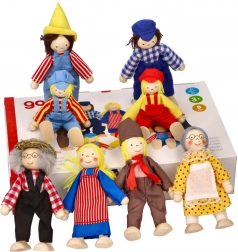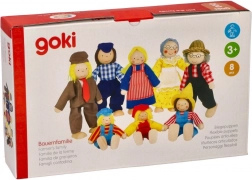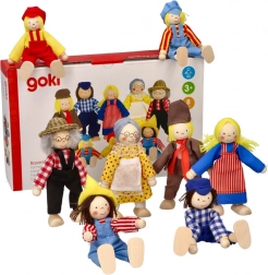 GOKI Fattoria della Famiglia II offre marionette in legno originali con vestiti di stoffa. Queste marionette hanno arti mobili, il che consente una varietà di posizioni.