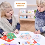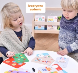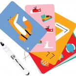 Il set include illustrazioni colorate piene di umorismo, che ispirano i bambini ad attività creative. Le carte permettono disegni e cancellazioni ripetute, il che è un ottimo regalo educativo per bambini in età prescolare. Ideale anche per viaggi con i bambini.