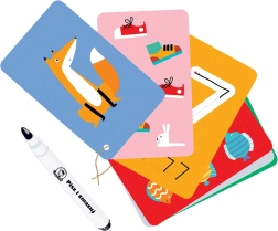 - Le carte e il pennarello a secco permettono di scrivere e cancellare ripetutamente.