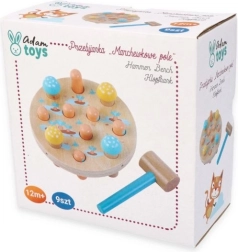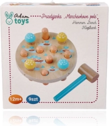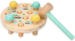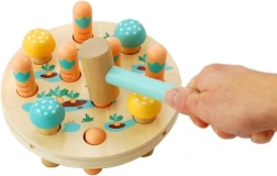Il martello in legno Campo di carote offre una base di legno rotonda con fori per pioli di legno colorati a forma di carota. Il bambino deve piantare la carota con l'aiuto di un martelletto per bambini amichevole con manico alla menta, ideale per le mani piccole. Con un colpo rapido, i bambini non solo migliorano la coordinazione mano-occhio e le abilità motorie fini, ma iniziano anche a comprendere le relazioni di causa ed effetto. Alla fine del gioco, basta girare la base, estrarre le carote e ricominciare!