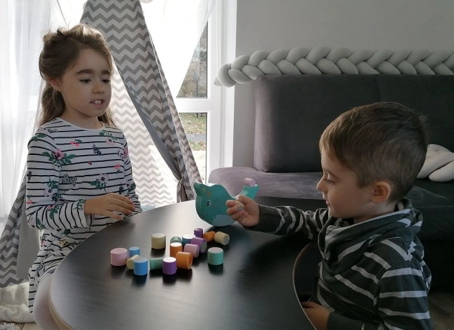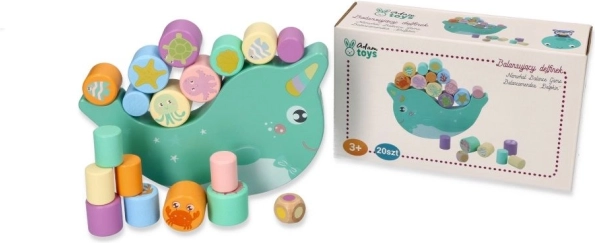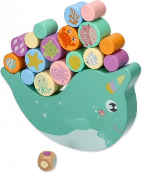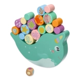 Scoprite il divertente gioco di equilibrio in legno con il narvalo, in cui i bambini bilanciano cilindri variopinti con motivi di animali marini su una base a dondolo. L’obiettivo è mantenere l’equilibrio e impilare i pezzi in modo che il narvalo non si ribalti – un ottimo allenamento per la motricità fine, la coordinazione occhio–mano e la pazienza.