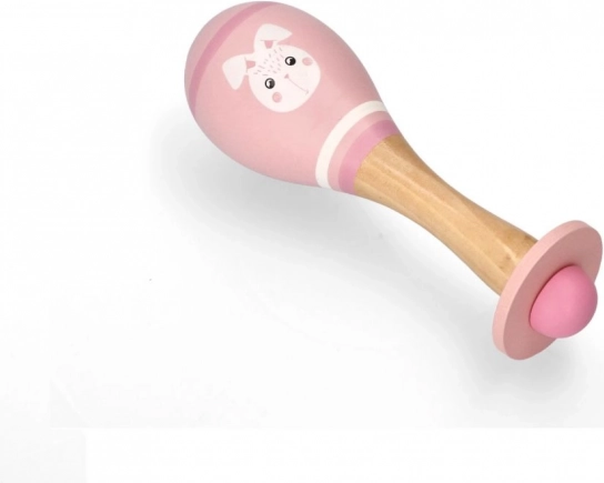Questo adorabile maracas in legno rosa con coniglietto è un ottimo primo strumento musicale per i più piccoli. Il suono delicato del sonaglio favorisce lo sviluppo dell’udito, del senso del ritmo e della naturale curiosità, mentre forma e dimensioni sono perfettamente adatte alle piccole mani dei bambini. Il legno naturale, la superficie liscia e i bordi accuratamente arrotondati garantiscono un gioco sicuro ogni giorno.