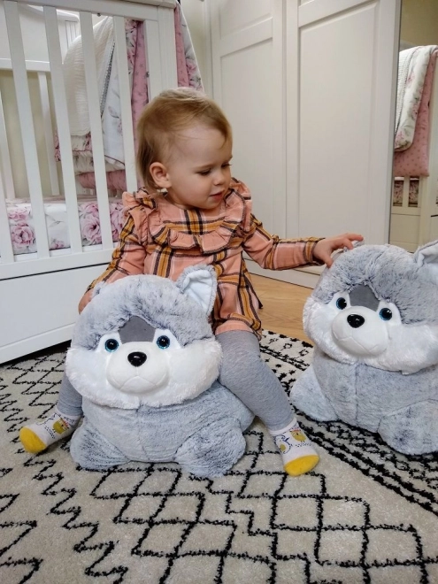 Questo adorabile cuscino peluche husky è il compagno ideale per bambini di tutte le età. Grazie al materiale soffice e piacevole, è una scelta perfetta per coccolarsi o per una seduta confortevole. Con il suo design universale e i magici occhi blu, conquista subito l’attenzione.