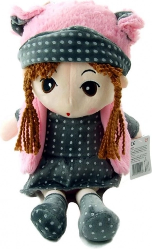 Incontra la Bambola Pola, un meraviglioso peluche con capelli castani intrecciati, che sfoggia un abitino grigio a pois e accessori rosa. Questo morbido giocattolo è il compagno ideale sia per il gioco quotidiano sia per notti serene.