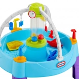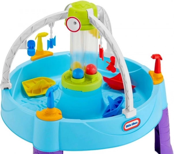Il tavolo è dotato di vari elementi, come bersagli rotanti e cilindri d'acqua, che stimolano i bambini a un gioco dinamico e allo sviluppo delle loro capacità.