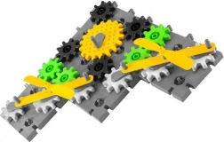 La combinazione di pannelli e ingranaggi di diversi colori permette di creare strutture originali e di sperimentare con meccanismi funzionanti.