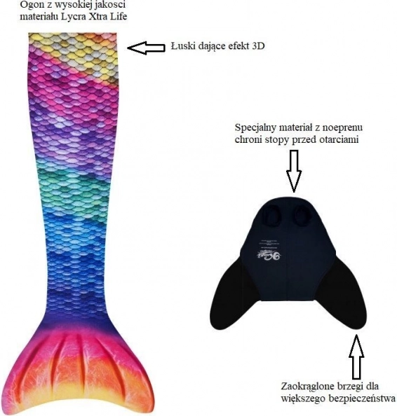 La coda e il bikini si adattano alla forma del corpo, garantendo il massimo comfort durante il gioco e il nuoto.