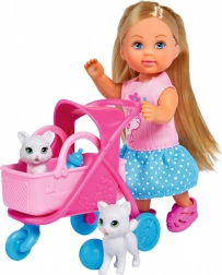 Bambola Evička porta un fantastico mondo d'immaginazione ai bambini con due adorabili gattini e un passeggino dotato di cestino rimovibile e vari accessori che stimolano il gioco creativo.