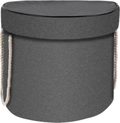 Grazie alle comode maniglie in corda potete spostare facilmente il cestino da una stanza all’altra, in terrazza o al picnic. Il cestino grigio neutro e il tappetino giallo‑nero si adattano a qualsiasi interno.