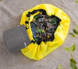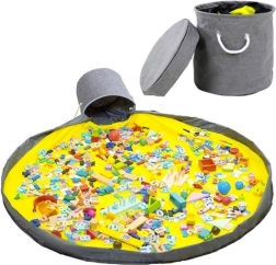 Pratico cestino 2 in 1 con tappetino da gioco per riordinare mattoncini e giocattoli in pochi secondi. Grande tappetino dal diametro di 135 cm che funge da spazio sicuro per giocare e, grazie alla cordicella con stopper, si trasforma facilmente in una sacca da trasporto. Resistente all’acqua, con robuste maniglie in corda e alto bordo del tappetino per evitare la fuoriuscita dei giochi.