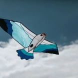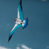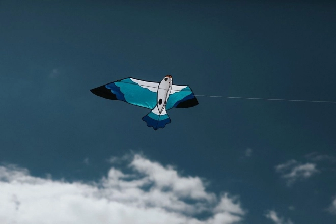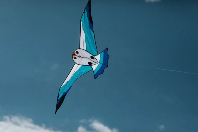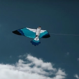 Le ali a contrasto blu e bianche sono ben visibili nel cielo, così avrai sempre l’aquilone sotto controllo.