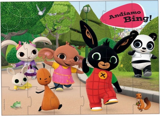 Scopri il divertimento con gli eroi del cartone BING! Questi grandi puzzle da pavimento includono 24 pezzi robusti che, una volta assemblati, creano un'immagine colorata di 70 × 50 cm – ideale per i bambini e per il gioco in famiglia.