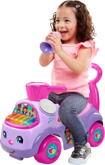 Il cavalcabile viola FISHER-PRICE Parata musicale è un compagno versatile per le prime corse e i primi passi. Grazie alla maniglia posteriore funge da stabile appoggio durante la camminata e, una volta seduti, il bambino si spinge con i piedini, rafforzando naturalmente i muscoli e allenando l’equilibrio.