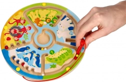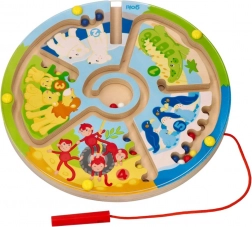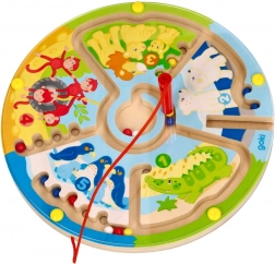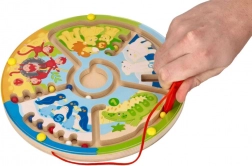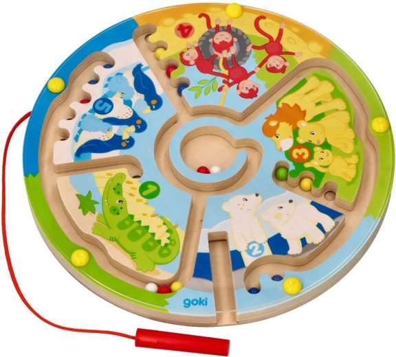 Il divertente labirinto magnetico in legno GOKI a tema Zoo insegna ai bambini a guidare le biglie con la matita magnetica, allenando la motricità fine, la coordinazione mano–occhio e il riconoscimento di colori e numeri. Il resistente plexiglass protegge le biglie; il pratico diametro di 23 cm e la matita con cordino lo rendono un giocattolo ideale da 3 anni.