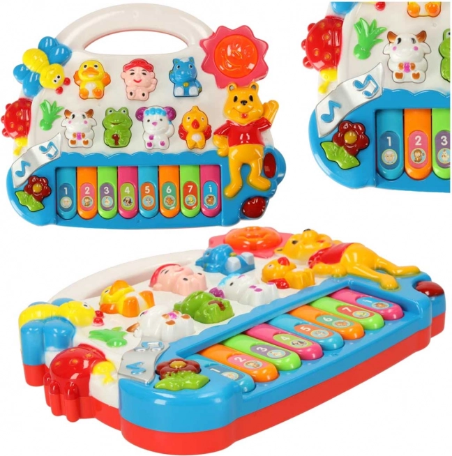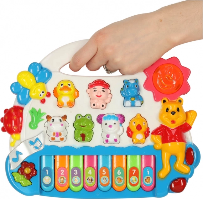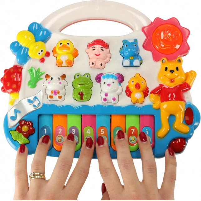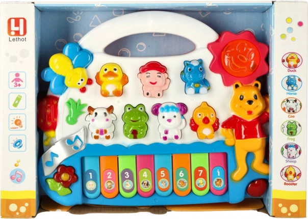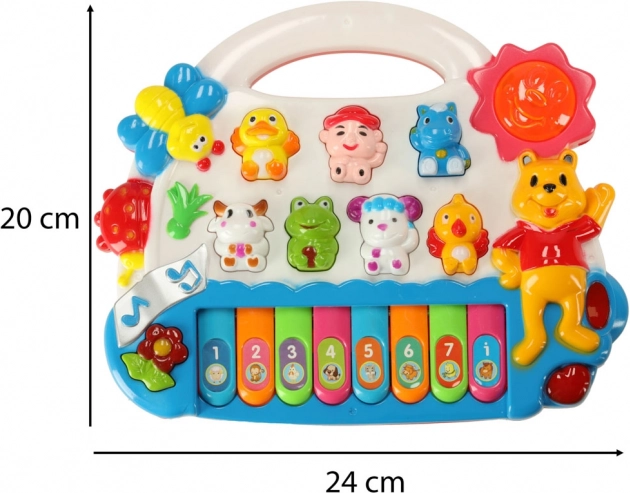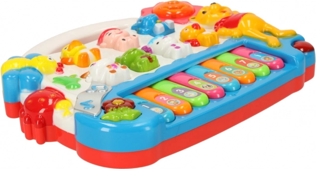Colorato pianolino interattivo per i più piccoli che offre melodie, scala e suoni di animali, sviluppando udito e immaginazione. Grazie agli effetti luminosi alla pressione dei tasti e alla comoda maniglia, è perfetto a casa e in viaggio. Il giocattolo favorisce lo sviluppo cognitivo e l’apprendimento di colori e numeri – apprendimento e divertimento in uno.