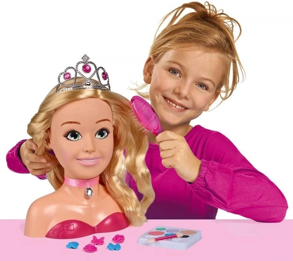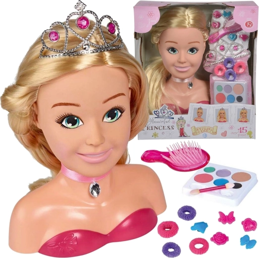 Testa per styling PRINCESS, corona, spazzola, 5 mollette, elastici, palette make-up con applicatore