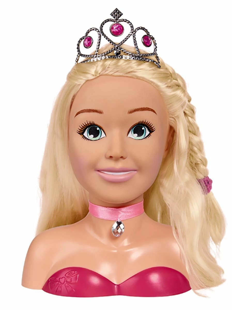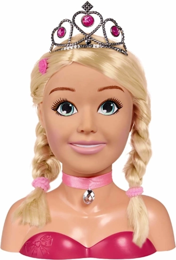 Questa affascinante testa per styling con lunghi capelli biondi e nastro rosa con pietrina è ideale per piccole parrucchiere e make-up artist. Grazie al set di accessori – dalla corona argento alla spazzola, mollettine ed elastici fino alla palette di trucchi – i bambini possono creare facilmente acconciature da fiaba e trucchi delicati.