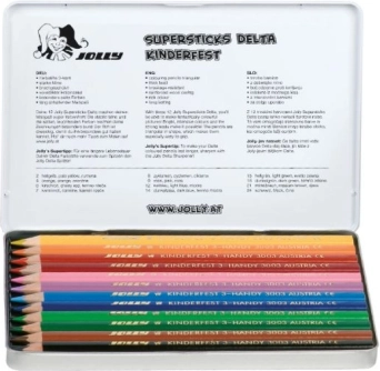 Scoprite le matite colorate triangolari DELTA di alta qualità con 12 tonalità brillanti. La mina morbida scorre fluidamente sulla carta, i colori si stratificano e si sfumano bene e, grazie alla resistenza alla rottura, durano più a lungo. La scatola metallica mantiene le matite al sicuro e ben organizzate.