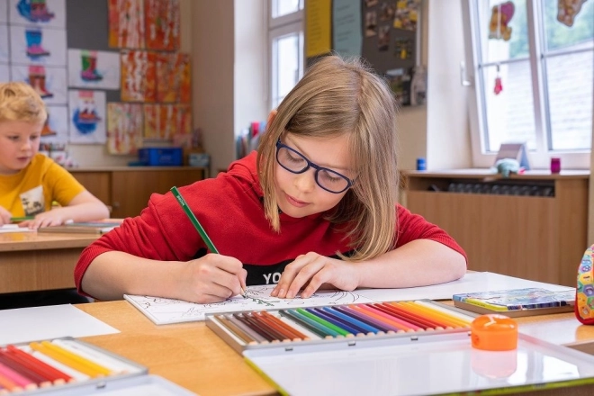 Il corpo triangolare si adatta alla mano dei bambini, favorisce la presa corretta e aumenta il comfort durante il disegno – meno affaticamento, più creatività.