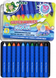 Pastelli a cera AQUA infrangibili in una pratica scatola di metallo per piccoli creativi dai 3 anni. Offrono colori vividi e intensi, sono resistenti alla rottura e rispettano la certificazione CE. Grazie alle dimensioni compatte 14 × 10 cm entrano facilmente nello zaino e nell'astuccio.