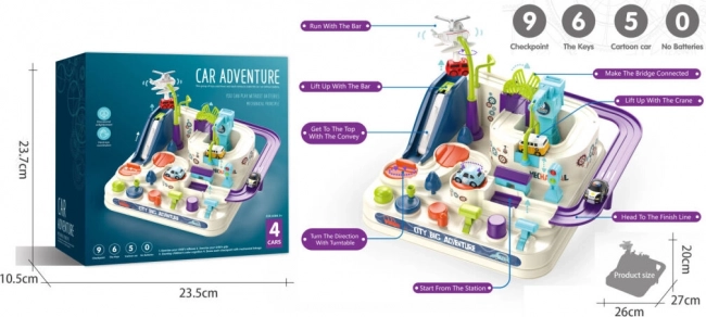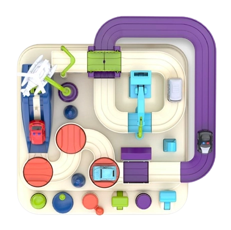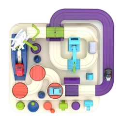 I pulsanti di controllo e le manopole danno ai bambini il comando su piattaforme elevatrici, platform mobili e ponte. Il gioco sviluppa pianificazione e capacità decisionali – i piccoli piloti devono pensare a come percorrere al meglio il tracciato e superare le insidie.