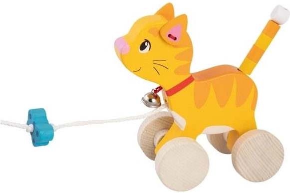 Questo adorabile gattino trainabile in legno è il giocattolo ideale per supportare lo sviluppo motorio e migliorare l'equilibrio nei bambini piccoli. È dotato di un campanellino che tintinna dolcemente durante il movimento, aumentando l'attrattiva del giocattolo.
