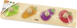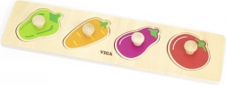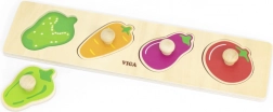 Questo puzzle in legno di qualità con forme di verdura (peperone, carota, melanzana, pomodoro) è il primo puzzle ideale per bambini dai 1 anno. I pezzi grandi con pomelli supportano la corretta presa, allenano la coordinazione occhio–mano e aiutano a distinguere colori e forme.