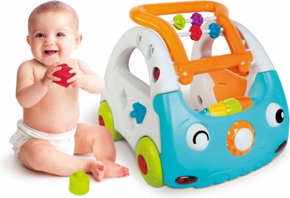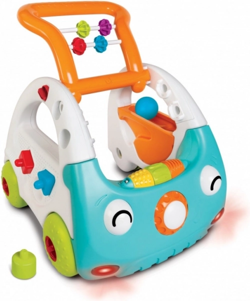 - Il manubrio può essere regolato in base all’altezza del bambino e le ruote possono essere bloccate, in modo che l’auto serva come supporto stabile per il bambino che impara a stare in piedi e mantenere l’equilibrio.