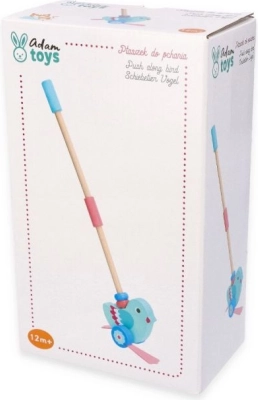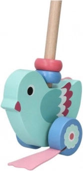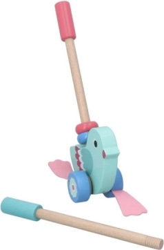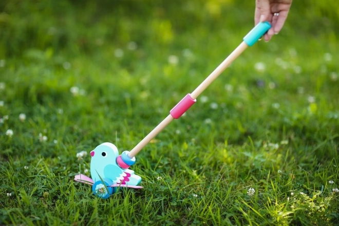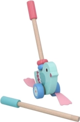 Questo bellissimo uccellino di legno da spingere è progettato per aiutare i bambini dai 12 mesi in su a sviluppare abilità motorie e di equilibrio. Grazie all'asta rimovibile, che raggiunge i 48 cm di lunghezza, il giocattolo è facile da spingere e maneggiare. Il design complessivo combina il corpo turchese e le ali rosa, stimolando l'immaginazione e il senso dei colori dei bambini.