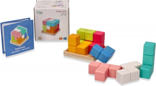 Il cubetto puzzle aiuta i bambini a sviluppare la motricità fine e aumenta la loro capacità di risolvere problemi. Con colori vivaci come il blu, l'arancione, il rosa e il legno naturale, questo giocattolo non solo intrattiene ma educa anche.