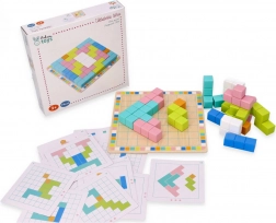 Immergeti nel mondo della logica e della creatività con questo affascinante puzzle di legno in stile Tetris di AdamToys. I bambini possono comporre figure secondo le carte o inventare costruzioni proprie. I blocchi possono essere usati non solo sulla piattaforma, ma anche per creare costruzioni spaziali. Il gioco sviluppa in modo divertente pensiero logico e analitico e contemporaneamente migliora abilità manuali.