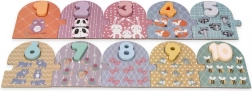 Ogni tavoletta con animaletti corrisponde a una cifra. I bambini collegano numero e quantità in modo visivo e tattile, semplificando i primi passi nel conteggio.