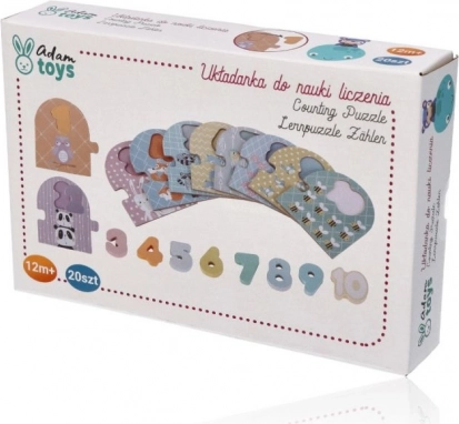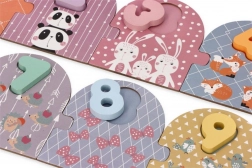 Questo puzzle in legno di alta qualità unisce divertimento e apprendimento. Ogni numero da 1 a 10 ha la propria tavoletta con simpatici animaletti nel numero corrispondente, così il bambino comprende facilmente il rapporto tra cifra e quantità. Le cifre colorate e in rilievo sono comode da impugnare per le manine dei bambini e favoriscono lo sviluppo della motricità fine e della percezione visiva.