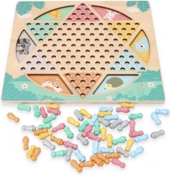 Delicati motivi di animaletti e piolini/pedine variopinti favoriscono la concentrazione e rendono il gioco attraente per i bambini.