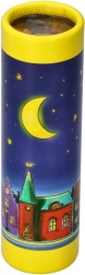 Questo caleidoscopio compatto con tema della cittadina sotto il cielo stellato conquista con colori vivaci e facilità d’uso. Grazie alle dimensioni maneggevoli si adatta perfettamente alla mano dei bambini ed è ideale sia in viaggio che per il gioco a casa.